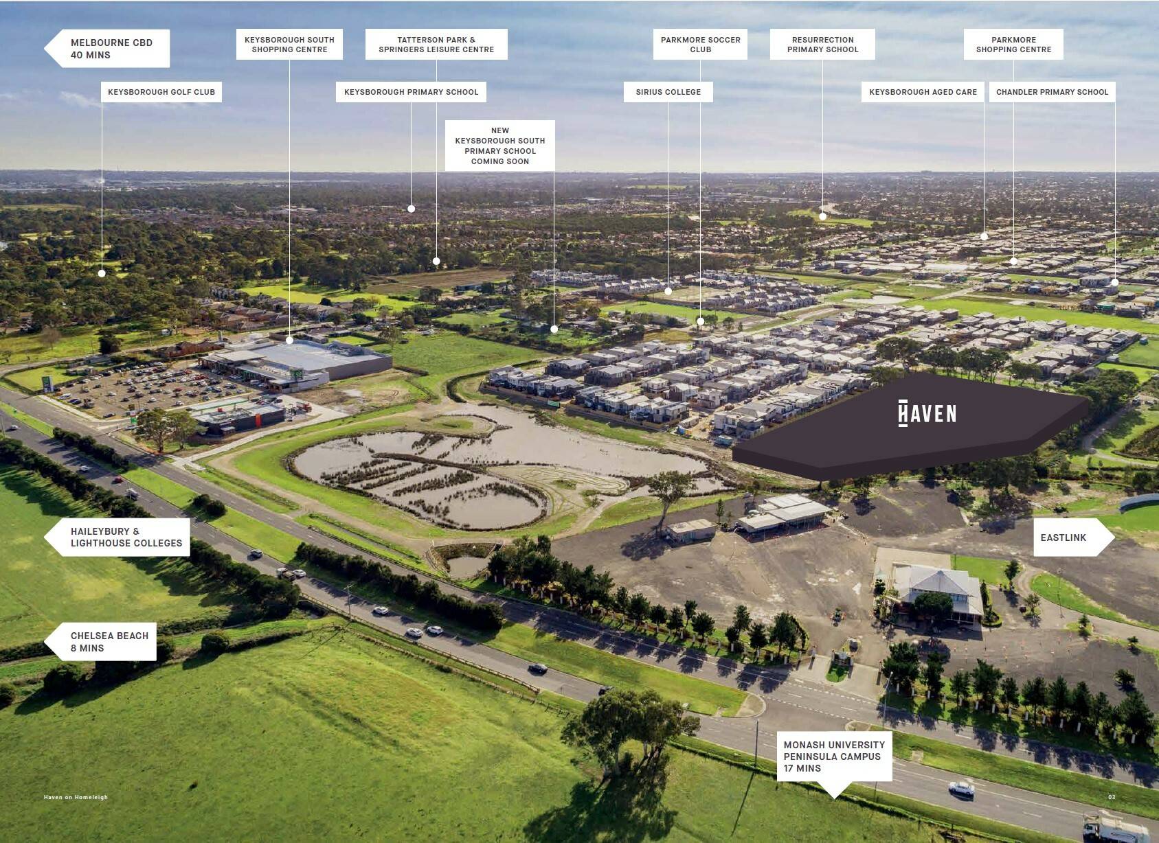 • Haven is perfectly positioned in a quiet, calm location, with seamless connectivity to those modern conveniences and amenities for day to day life. The new Keysborough South shopping centre located a mere 2 minutes from your Townhome is where you’ll find your local Woolworths, Keys Medical Centre and an array of various specialty stores for the everyday essentials. Springers Leisure Centre within Tatterson Park offers gym facilities, yoga classes, sports clubs, badminton and volleyball courts for the actively minded.
